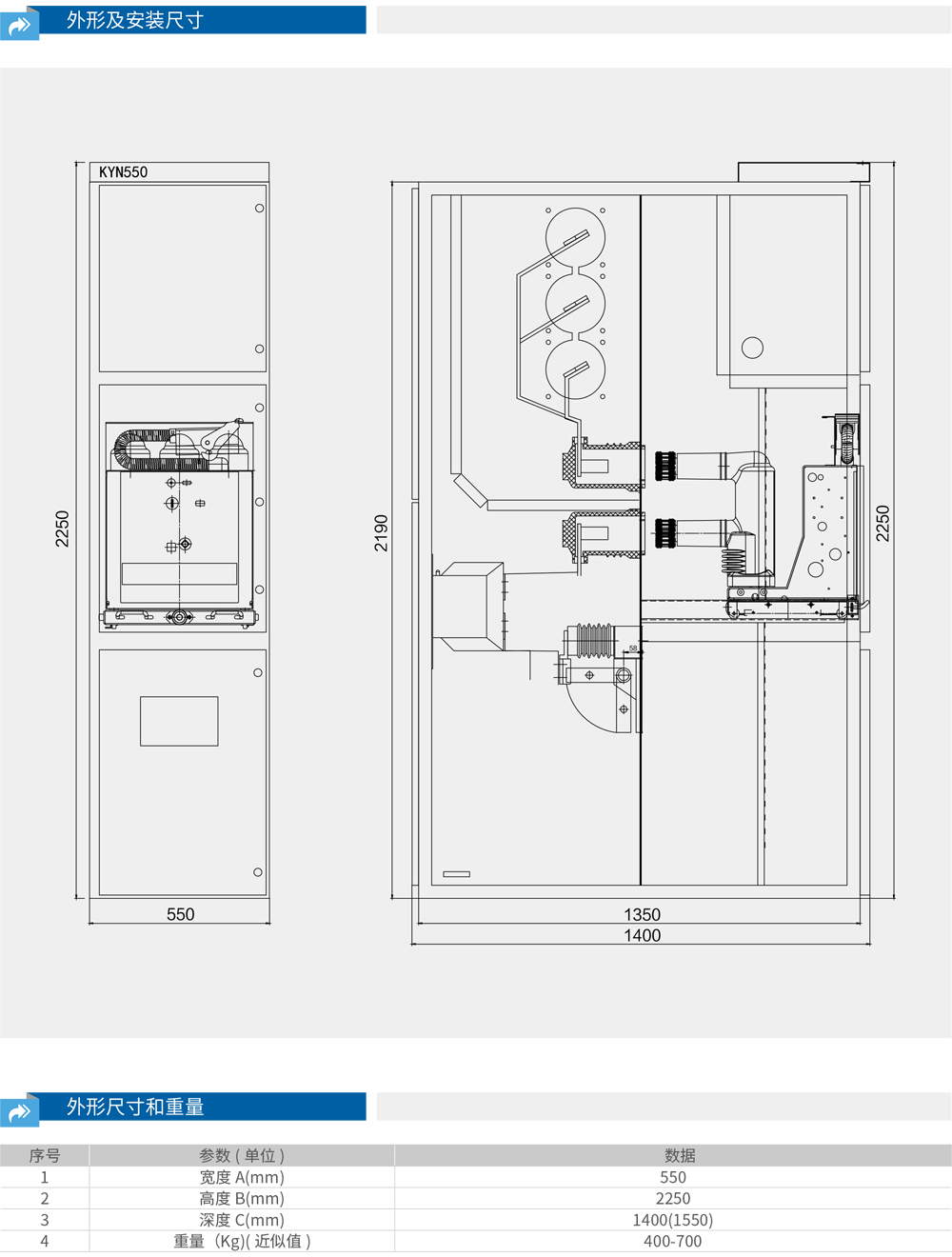 KYN550配电站是一款金属铠装移开式交流开关设备,支持加工定制,具有移开式结构形式,防护等级达IP4X。其母线额定电流为1250A,额定频率50Hz,机械寿命高达30000次。外形尺寸55012002200,短路关合电流630A,工作电源12KV,额定绝缘电压同样为12KV。此配电站净重450,总重量500,满足各种工厂供电需求,支持智能电网接入。