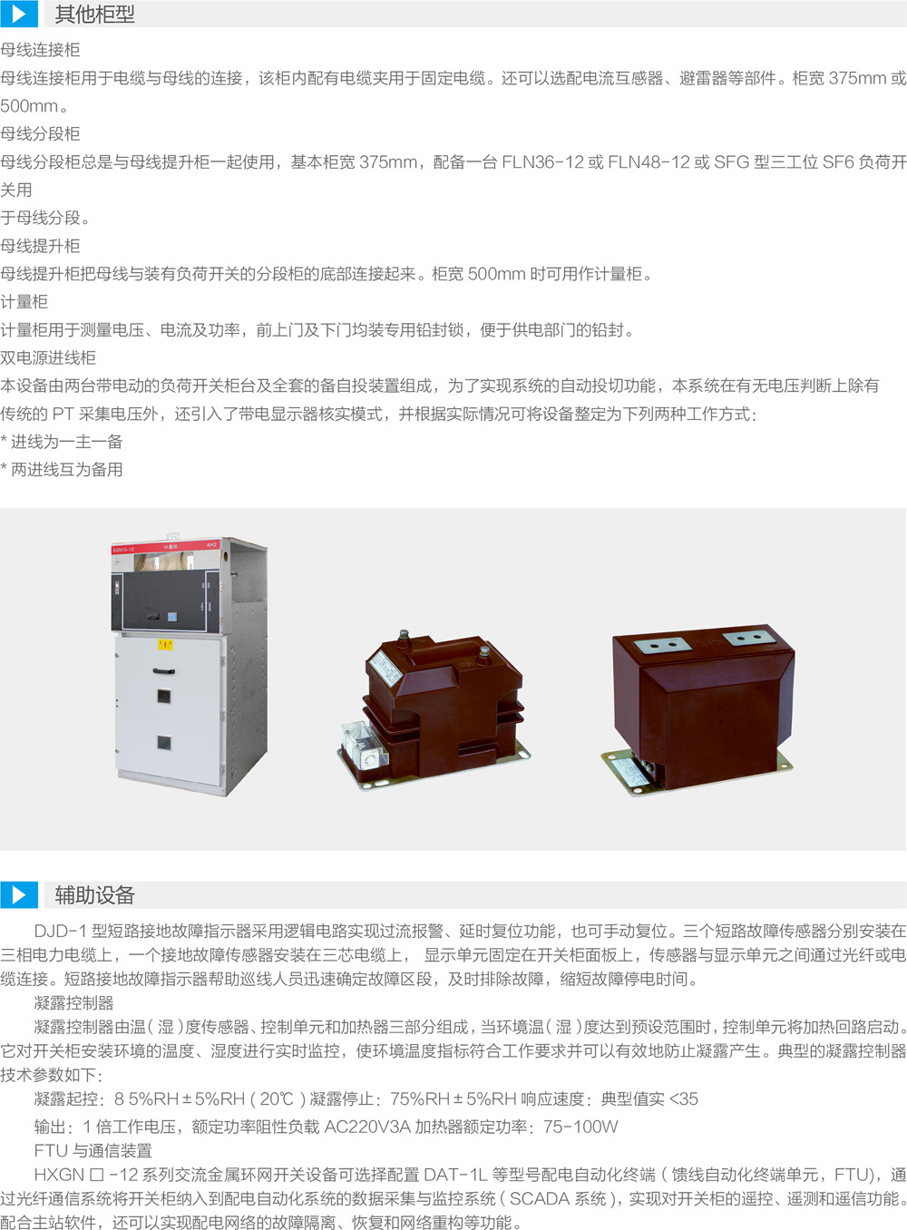 HXGN□-12系列交流金属环网开关设备是以FLN□-12型SF6负荷开关作为主开关而整柜采用空气绝缘的、适用于配电自动化的,紧凑型可扩展的金属封闭环网开关设备。具有结构简单、操作灵活、连锁可靠、安装方便等特点。对各种不同的应用场合、不同的用户要求均能提供对应的技术方案。